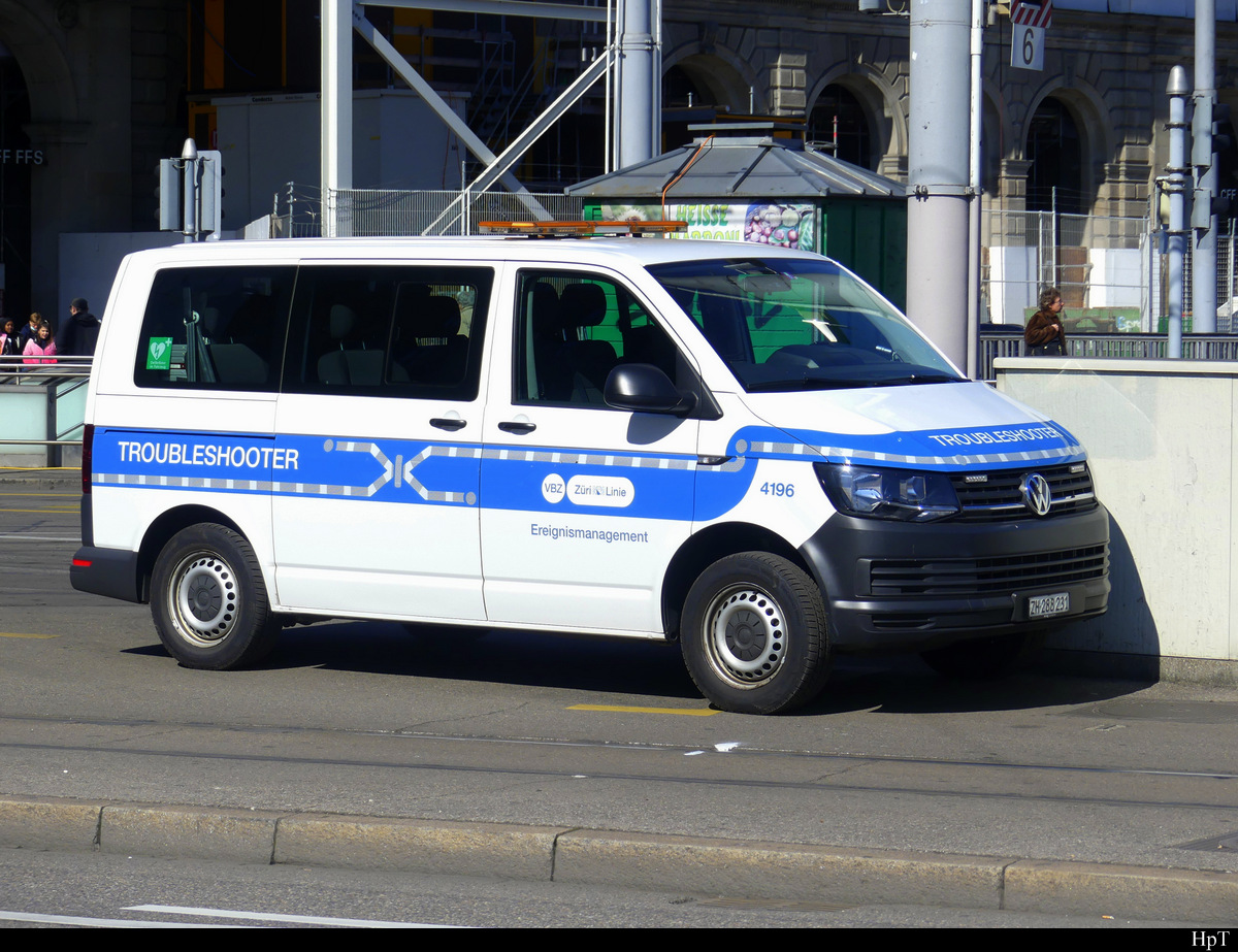 VW Bus der VBZ als Troubleshooter abgestellt vor dem SBB HB Zürich am 13.03.2022