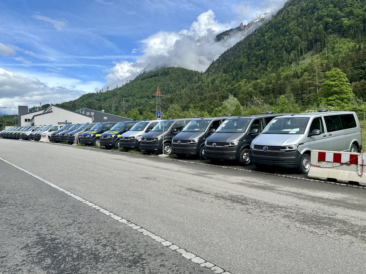 Diverse neue VW Transporter für den Schweizer Zoll am 23.5.24 bei R-Technik in Matten bei Interlaken.
