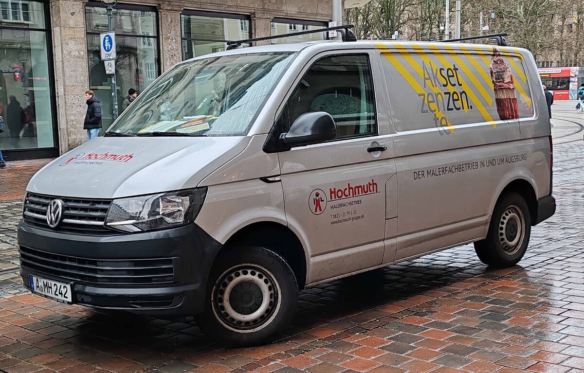 =VW T6 vom Malerfachbetrieb HOCHMUTH, gesehen in Augsburg im Dezember 2023