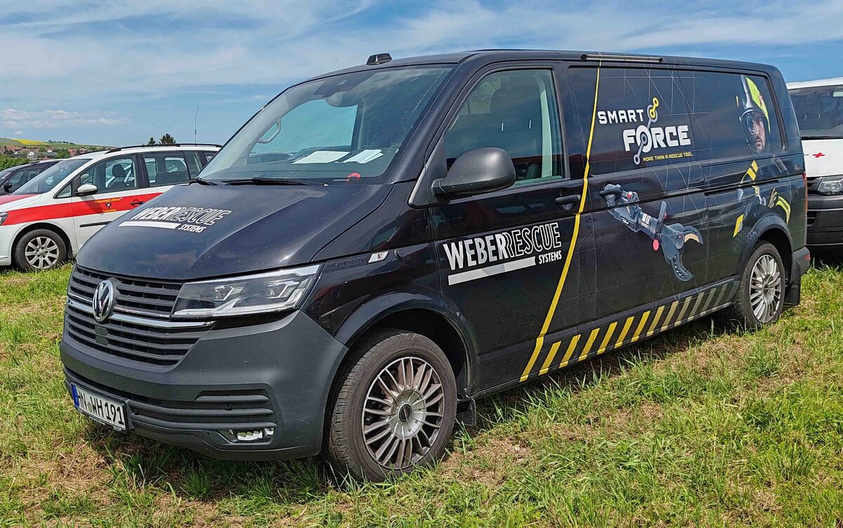 =VW T 6 von WEBER RESCUE-Systems, gesehen auf dem Parkgelände der Rettmobil 2024 in Fulda