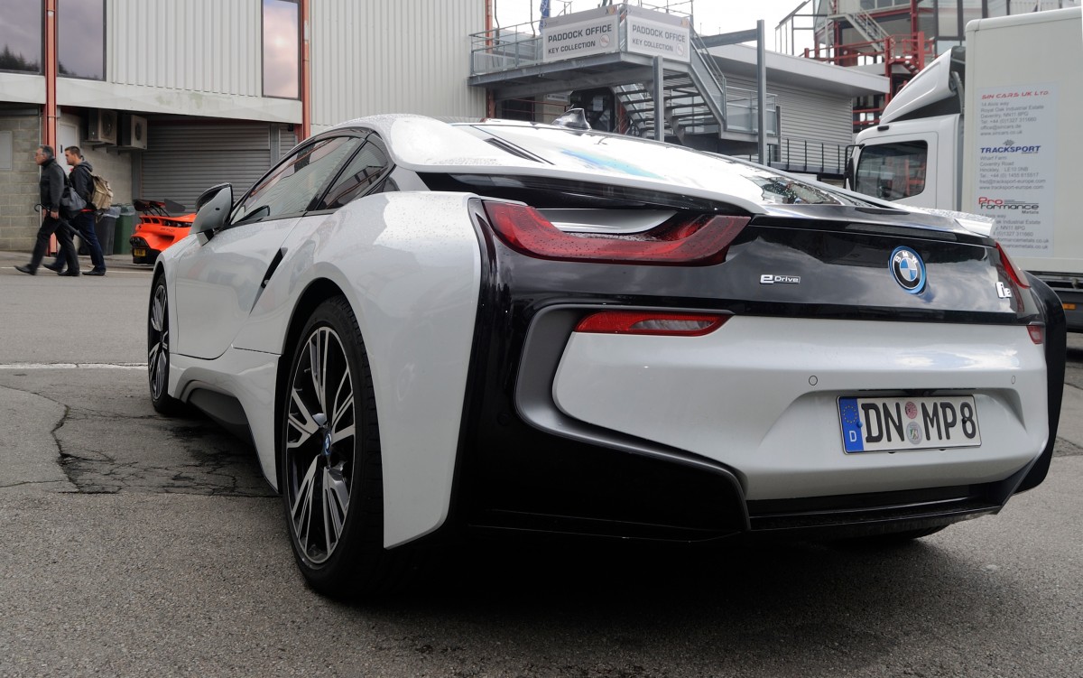 Heckansicht des BMW i8 eDrive, im Fahrerlager des ADAC GT Masters, am 20.Juni 2015 in Spa Francorchaps. (https://de.wikipedia.org/wiki/BMW_i8)