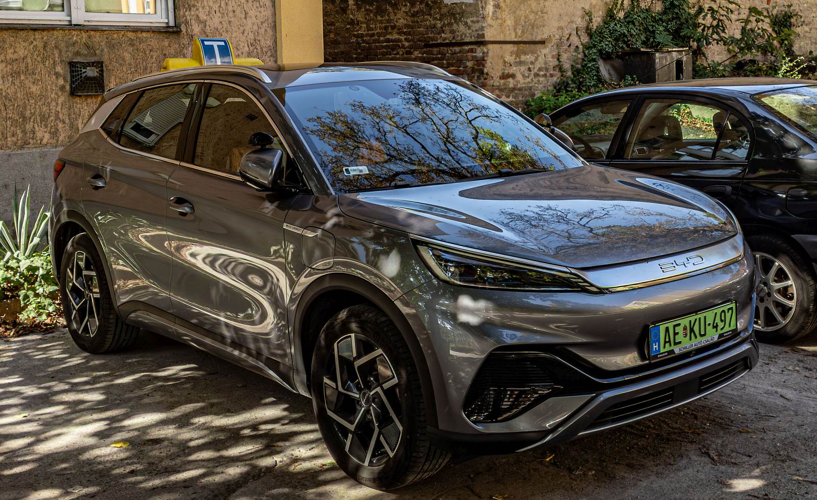 Dieser BYD Atto 3 Elektro-SUV (Rückansicht) wird bei einer Fahrschule in Ungarn eingesetzt! Foto: September, 2024.