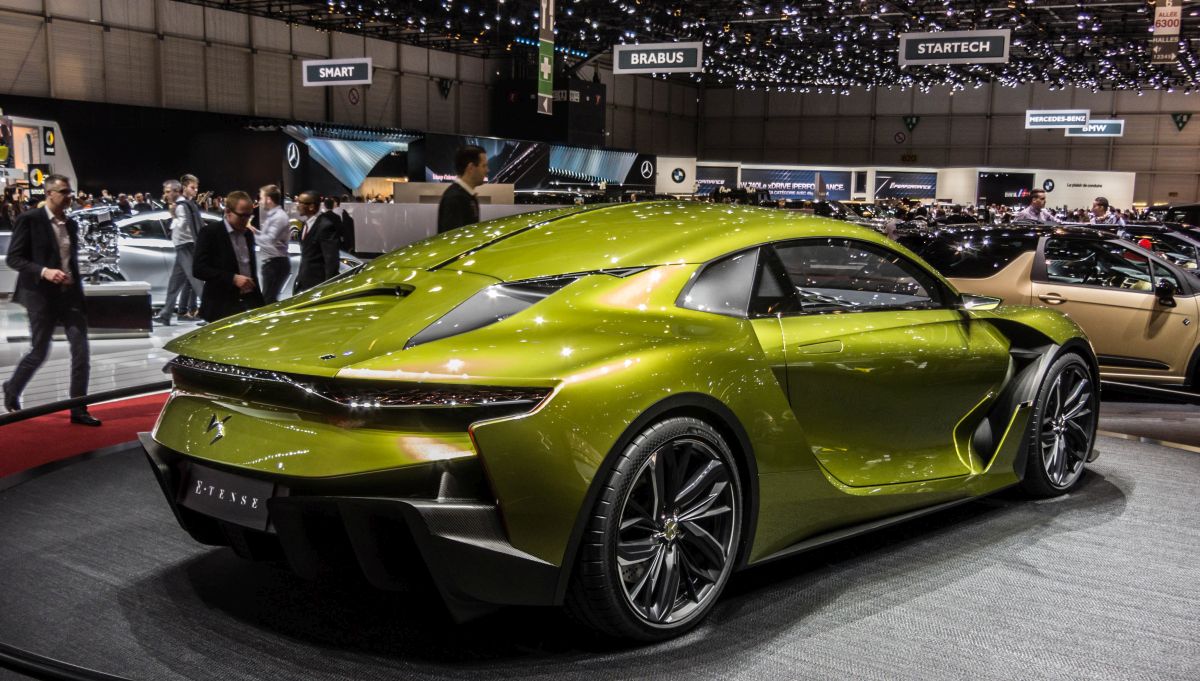 DS  E-Tense  Sportcar (Rückansicht), ausgestellt auf dem Autosalon Genf 2016.