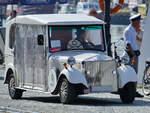 Dieses auf alt getrimmte Sightseein-Fahrzeug war Anfang September 2024 in Kołobrzeg (Kolberg) unterwegs.
