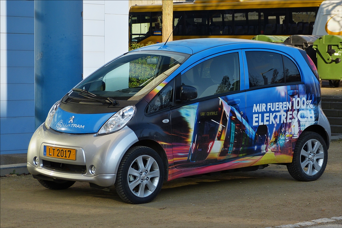 . Peugeot iOn gesehen an der Ladestetion beim Bahnhof inDiekirch. 21.06.2015