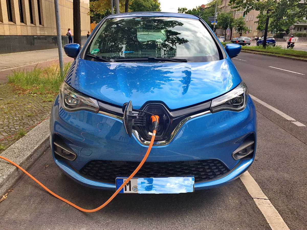 Reault ZOE E-Tech mit Schnuller. (Der Ladeanschluss verbirgt sich hinter dem Renault-Logo an der Schnauze). Foto: 09.08.2021