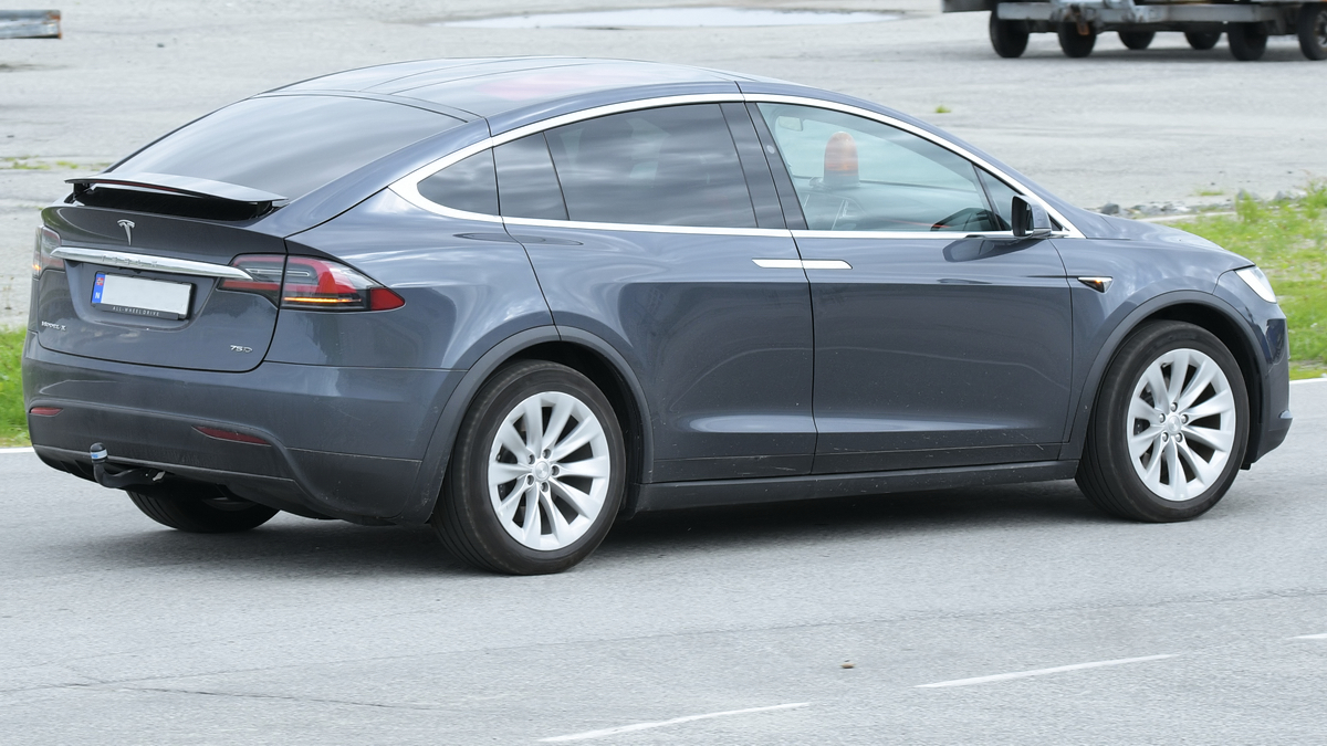 Der Tesla Model X im Juni 2017 auf dem zivilen Teil des Flughafens Sola in Norwegen.
