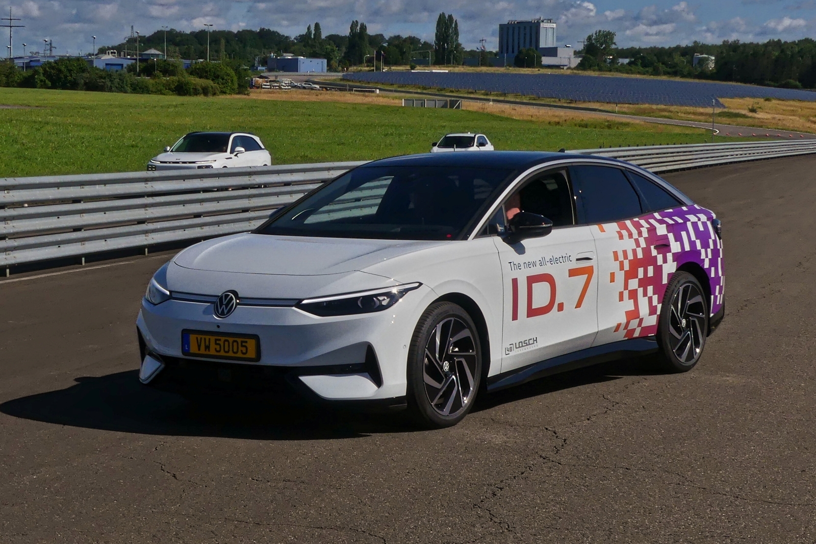 VW ID 7 startet die Rundfahrt über den Kurs beim Drive Day in Colmar Berg. 07.07.2024