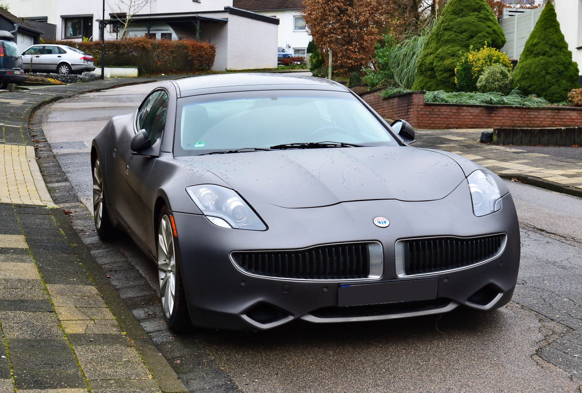 Fisker Karma, eine luxuriöse Plug-in-Hybrid-Limousine des US-amerikanischen Herstellers Fisker Automotive, er wird von zwei Elektromotoren mit einer Gesamtleistung von 300 kW (408 PS) angetrieben.
