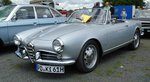 Alfa Romeo Giulietta Spider. 1955 - 1962. Die Baureihe 750 wurde bereits 1954 vorgestellt. Auf Initiative des US-Importeurs Maxi Hoffmann (Auch der geistige Vater des 190SL) wurde ein Jahr später der Spider auf den Markt gebracht. Der 4-Zylinderreihenmotor hat einen Hubraum von 1290 cm³ und leistet 65 PS und 90 PS in der Version Spider Veloce. Oldtimertreffen Glandorf am 14.05.2017.