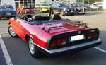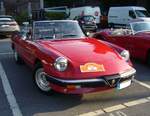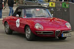 Heckansicht eines Alfa Romeo 1600 Fastback Spider aus dem Jahr 1972. Allerdings hat der Vorbesitzer ein wenig "hochgestapelt" und hat dem Spider das Heckemblem des 2000´er verpasst. Classic Remise Düsseldorf am 29.03.2025.