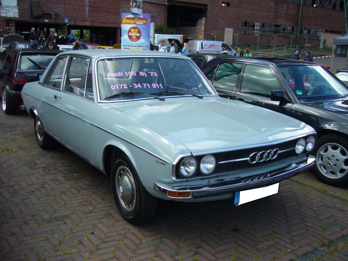 Audi C1 100, gebaut von 1968 bis 1976. Hier wurde eine viertürige C1 Limousine im Farbton rauchblau und in der GL-Ausstattung abgelichtet. Der Vierzylinderreihenmotor leist 112 PS aus 1871 cm³ Hubraum. Youngtimertreffen Zeche Ewald in Herten am 12.05.2019.