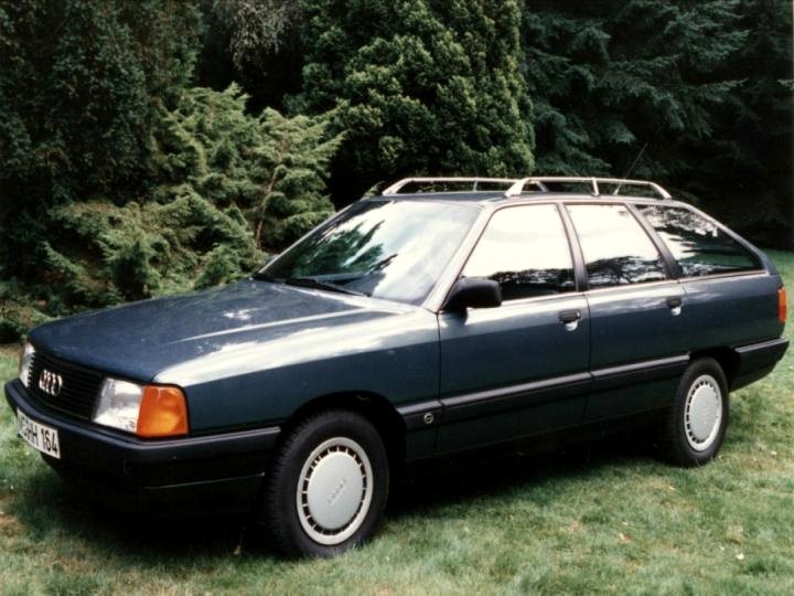 Audi 100 Avant mit Schrägheck als Vorläufer des heutigen Audi A6 Avant / gesehen in Greven (Kreis Steinfurt/Deutschland), 20.08.1988 -- eingescanntes Foto
