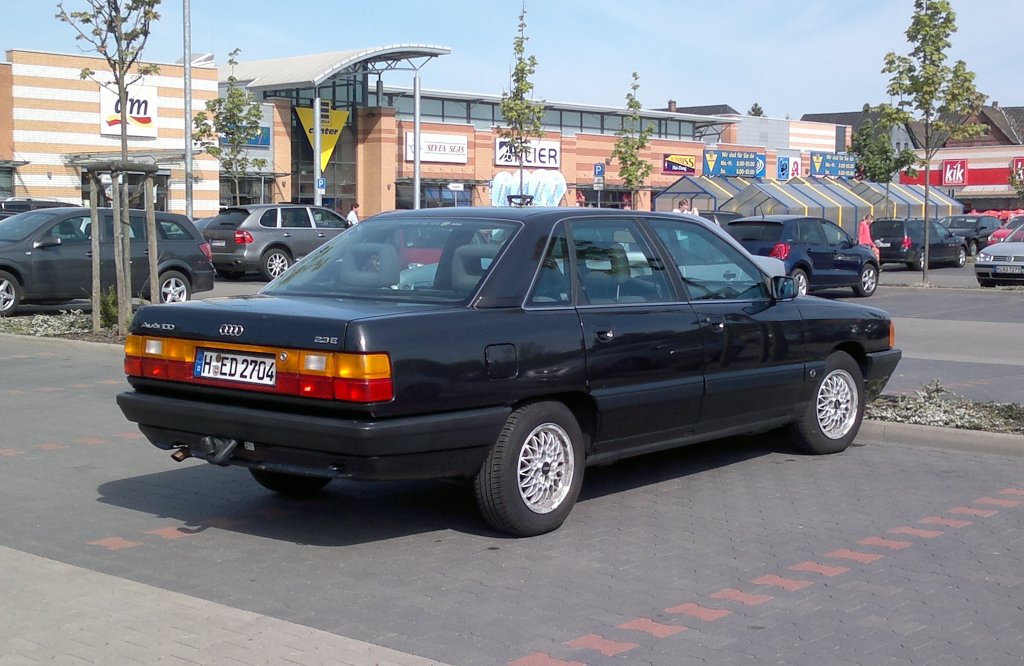 Audi 100 der Baureihe C4, wie er ab Dezember 1990 bei den Händlern stand. Mit einem Cw-Wert von 0,29 war die Limousine zum damaligen Zeitpunkt ganz vorne mit dabei. Die Baureihe wurde ab Oktober 1991 um das Kombimodell "Avant" ergänzt. Basismotorisierung war ein Vierzylinderreihenmotor mit einem Hubraum von 1984 cm³ und einer Leistung von 101 PS. Die meisten Kunden (wie beim Fahrzeug auf dem Foto) wählten allerdings das Modell 2.3E mit einem Fünfzylinderreihenmotor, der aus einem Hubraumvolumen von 2309 cm³ eine Leistung von 133 PS an die Vorderräder weiter gibt. Wie bei Audi üblich, war die Baureihe auch als allradangetriebenes Modell namens "Quattro" lieferbar. Oldtimertreffen auf dem Gelände des Bikertreffs Mutter Vogel in Marl am 28.09.2025. Michael H.