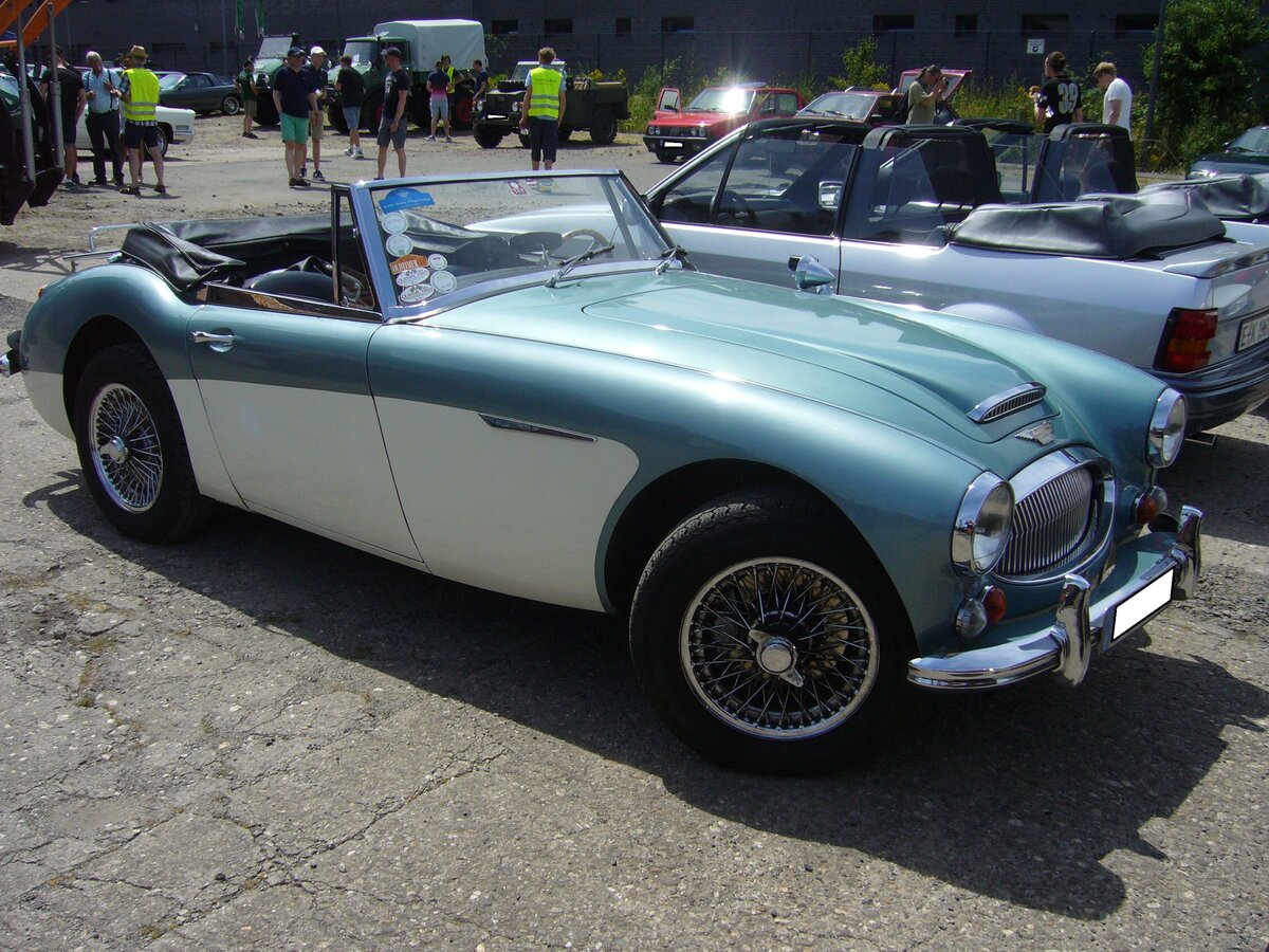 Austin Healey MK III 3000 in der Farbkombination iceblue over ivory. Donald Healey entwickelte dieses Modell, um insbesondere auf dem US-Roadstermarkt, erfolgreich zu sein. Der Ur-Healey wurde bereits 1951 vorgestellt und ging ein Jahr später in den Verkauf. 1968 verließ der letzte Healey die Werkshallen von Abingdon. Der Sechszylinderreihenmotor leistet 148 PS aus einem Hubraum von 2.912 cm³. Oldtimertreffen an der "Alten Dreherei" in Mülheim an der Ruhr am 19.06. und 20.06.2021.