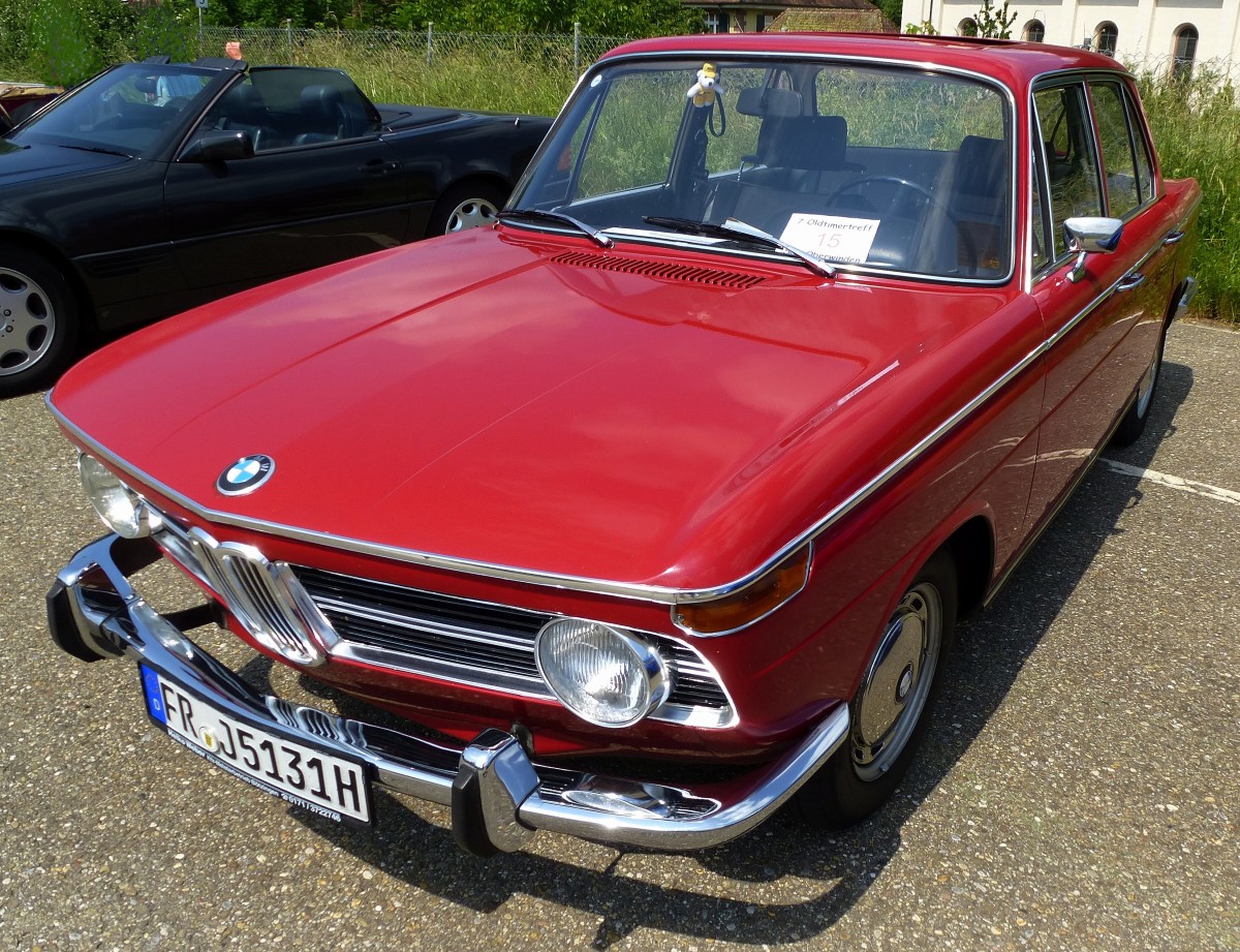 BMW 1800, gebaut von 1963 bis 1972. Der BMW 1800 war, das am längsten gebaute Modell, der sogenannten "Neuen Klasse" von BMW. Der Vierzylinderreihenmotor hat serienmäßig einen Hubraum von 1773 cm³ und leistet 90 PS. Bei diesem Wagen dürfte es sich um ein Fahrzeug aus dem Modelljahr 1971 handeln, da er bereits mit den ab dann verbauten, rechteckigen, Frontscheinwerfern ausgerüstet ist. Oldtimertreffen am Theater an der Niebu(h)rg am 19.10.2025 in Oberhausen/Rheinland. Michael H.