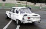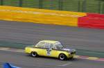 Heckansicht Nr.176 BMW 2002 Ti, schwer gezeichnet vom Regenrennen beim Dunlop FHR Langstreckencup, Youngtimer Festival Spa am 19.7.2015