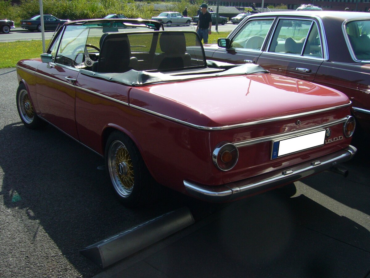 BMW 1600 Baur-Cabriolet. 1967 - 1971. Während der fünfjährigen Produktionszeit setzte BMW 1682 Fahrzeuge dieses Typs ab. Bei seiner Markteinführung kostete ein solches 1600´er Cabriolet DM 11980,00. Dafür bekam man ein wendiges, exclusives Cabriolet. Der Vierzylinderreihenmotor hat einen Hubraum von 1573 cm³ und leistet 85 PS. Die Höchstgeschwindigkeit liegt bei 162 km/h. Kleinwagentreffen Krefeld am 31.05.2018.