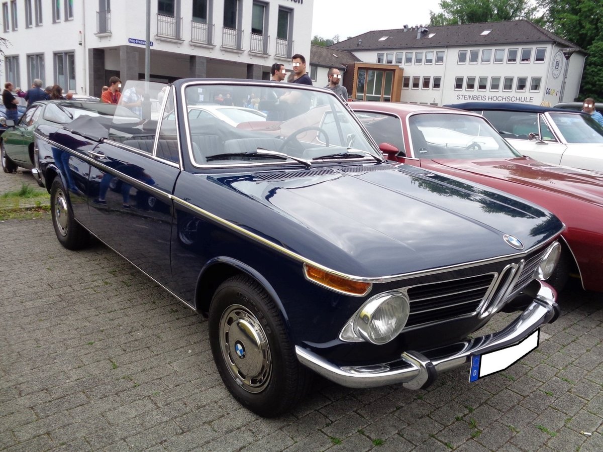 BMW 1600 Baur-Cabriolet, gebaut von 1967 bis 1971. Während der fünfjährigen Produktionszeit setzte BMW 1682 Stück Fahrzeuge dieses Typs ab. Bei seiner Markteinführung kostete ein solches 1600´er Cabriolet DM 11.980,00. Dafür bekam man ein wendiges, excluvises, Cabriolet. Der Vierzylinderreihenmotor hat einen Hubraum von 1573 cm³ und leistet 85 PS. Die Höchstgeschwindigkeit liegt bei 162 km/h. 18. Prinz Friedrich Oldtimertreffen am 26.05.2019 in Essen-Kupferdreh.