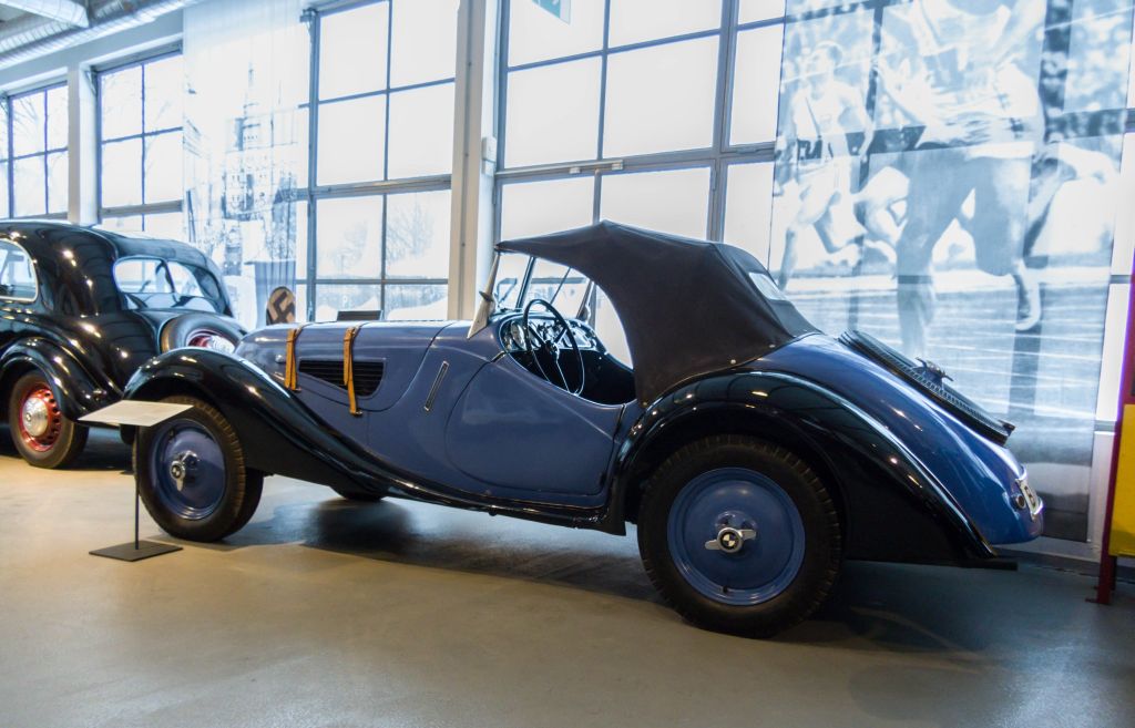 Seitenansicht eines wunderschönen BMW 328. 80PS für 780Kg, insgesamt 464 Stück wurde gebaut. Aufnahme: Automobilwelt Eisenach Ausgestellt (Datum: 25.01.2013)