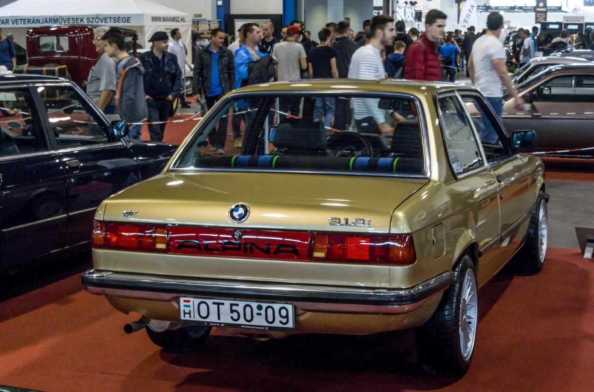 BMW 318 mit Alpina Rückleuchten. Das Auto wurde auf der Carstyling Tuning Show, März 2017 ausgestellt.