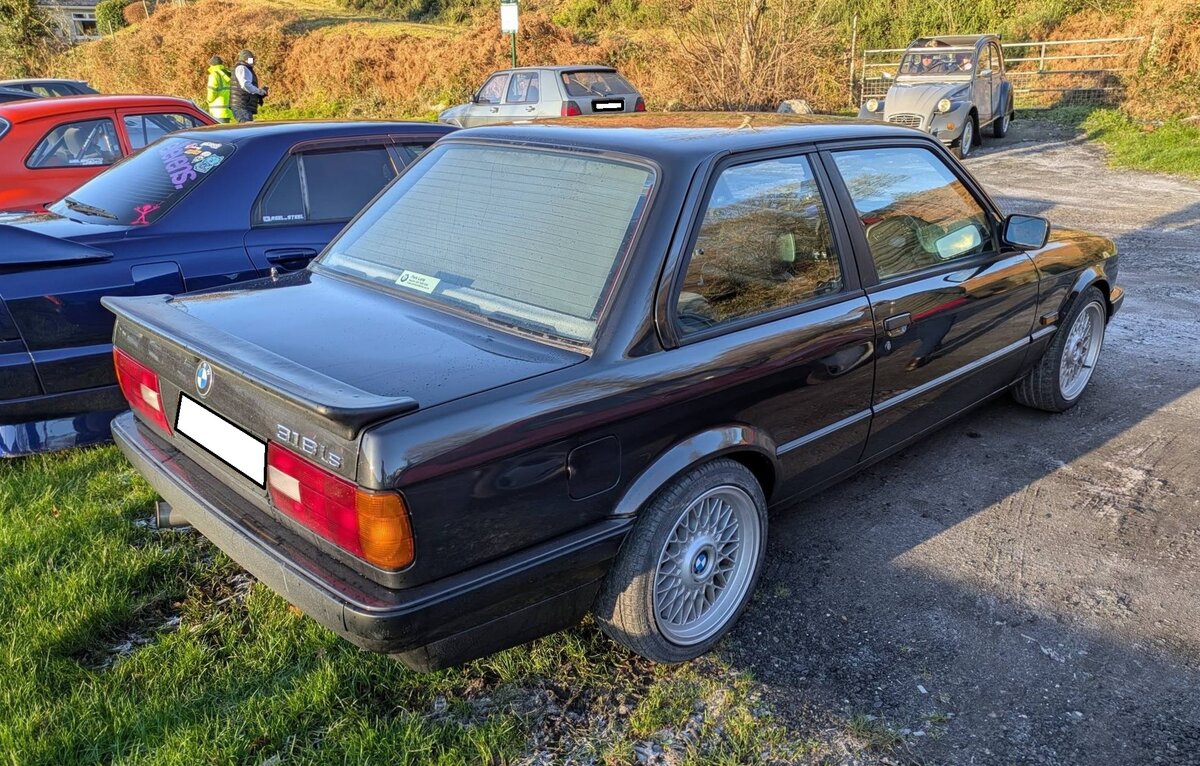 BMW E30 318is. Die Produktion des E30, also der zweiten Baureihe des 3´er BMW, begann im Oktober 1982. Ab August 1989 stand der gezeigte 318is bei den Vertragshändlern. Er blieb bis 1991 im Verkaufsprogramm der Münchener. Der Vierzylinderreihenmotor mit 16-Ventiltechnik hat einen Hubraum von 1796 cm³ und leistet 136 PS. Die Höchstgeschwindigkeit wurde mit 205 km/h angegeben. Auch äußerlich kam der 318is sportlich daher. Er war serienmäßig mit einem speziellen Front- und Heckspoiler, sportlichem Interieur und speziellen Alu-Felgen ausgestattet. September 2024 auf dem Besucherparkplatz eines Pubs in Pont-Neddfechan/South Wales.