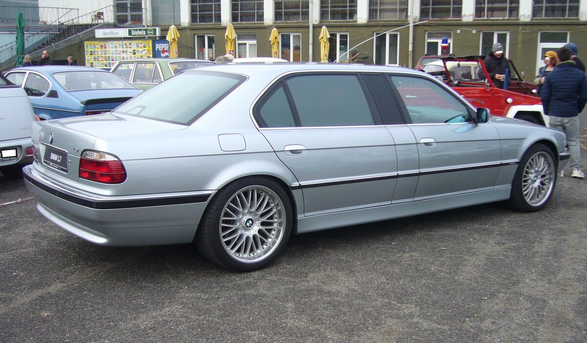 BMW 735i in der "Langversion" aus der Baureihe E32 im Farbton gazellenbeige. Im September 1986 brachten die Münchener mit der Baureihe E32 ein neues 7´er Modell auf den Markt. Der Oberklasse-BMW war jetzt erstmals auch in einer Langversion erhältlich, so das sich auf der hinteren Sitzbank die Beinfreiheit um ca. 11.5 cm erhöhte. Der abgelichtete E32 aus dem Jahr 1988 ist ein solches Modell. Der Sechszylinderreihenmotor hat einen Hubraum von 3430 cm³ und leistet 211 PS. Laut des Expose am Auto lag der Neupreis dieses BMW im Herstellungsjahr bei DM 102.000,00. Oldtimertreffen auf dem Gelände des Bikertreffs Mutter Vogel in Marl am 28.09.2025. Michael H.