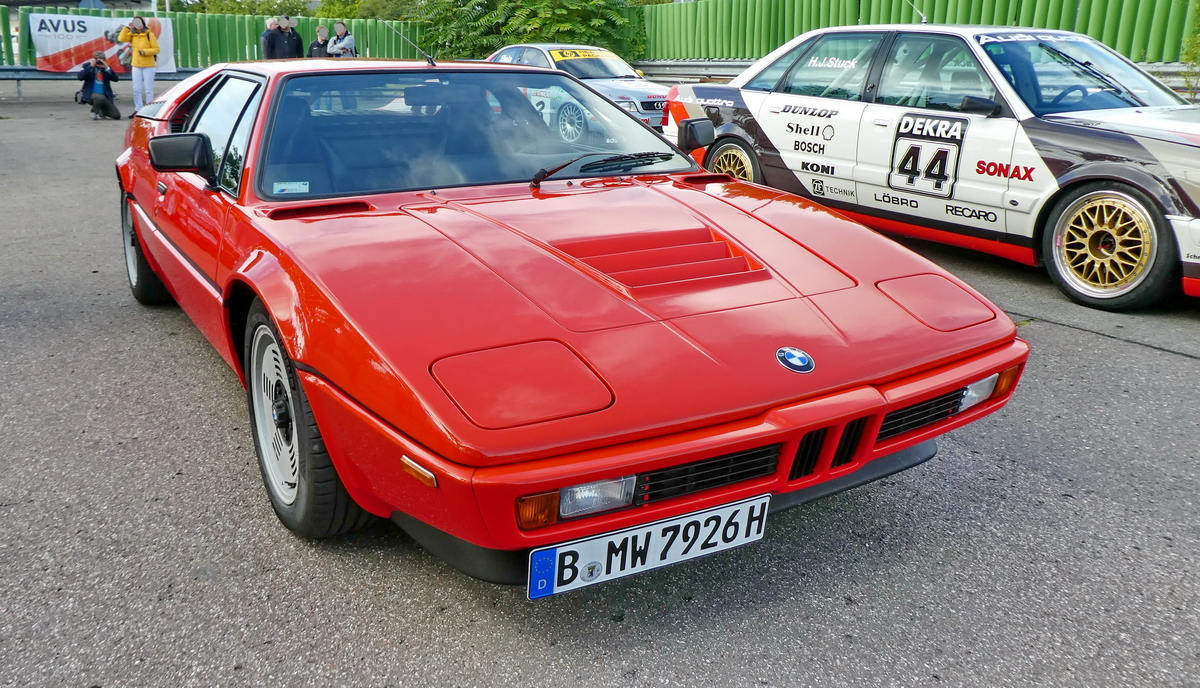 Einer von 460 gebauten BMW E26, uns besser bekannt als BMW M1. Der von 1979 bis 1981 angebotene M1 gehört zu den größten Schöpfungen des Automobilbaus, deren Entstehung spektakulärer war, als sein kommerzieller Misserfolg. Die Technik von BMW, die Karosserie gezeichnet von Giugiaro, das Konzept von Lamborghini und die Produktion bei Baur in Stuttgart. Der als Mittelmotor verbaute Sechszylinderreihenmotor hat einen Hubraum von 3453 cm³ und leistet 277 PS. Das damals DM 113.000,00 teure Auto brachte es auf eine Höchstgeschwindigkeit von 262 km/h. Techno Classica Essen am 06.04.2024. Michael H.