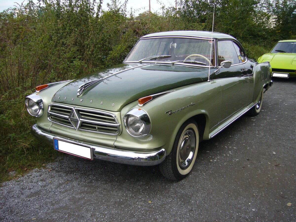 Borgward Isabella Coupe serienmäßig produziert von 1957 bis 1961. Carl. F.W. Borgward hatte ein solches Coupe auf Basis der bereits 1954 vorgestellten Isabella Limousine als Geschenk für seine Gattin modellieren lassen. Da dieses Coupe beim Publikum sehr viel Anklang fand, wurde es ab Februar 1957 in Serie produziert. Der abgelichtete Wagen entstammt dem Baujahr 1959 . Das Coupe war immer mit dem stärkeren Motor der Isabella TS ausgestattet. Dieser Vierzylinderreihenmotor leistet 75 PS aus einem Hubraum von 1493 cm³. Oldtimertreffen an der Niebu(h)rg in Oberhausen/Rheinland am 17.10.2021.