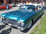 Cadillac Series 62 Hardtop Sedan des Modelljahres 1958. Von diesem Modell verkaufte die GM-Division Cadillac im Jahr 1958 13.335 Fahrzeuge zu einem Stückpreis ab US$ 4891,00. Der abgelichtete Wagen ist im Farbton jamaican green lackiert. Angetrieben wird der Series 62 von einem V8-motor, der aus 5979 cm³ Hubraum 310 PS leistet. Oldtimertreffen "Schwarzwaldhaus" in Mettmann am 12.08.2018.