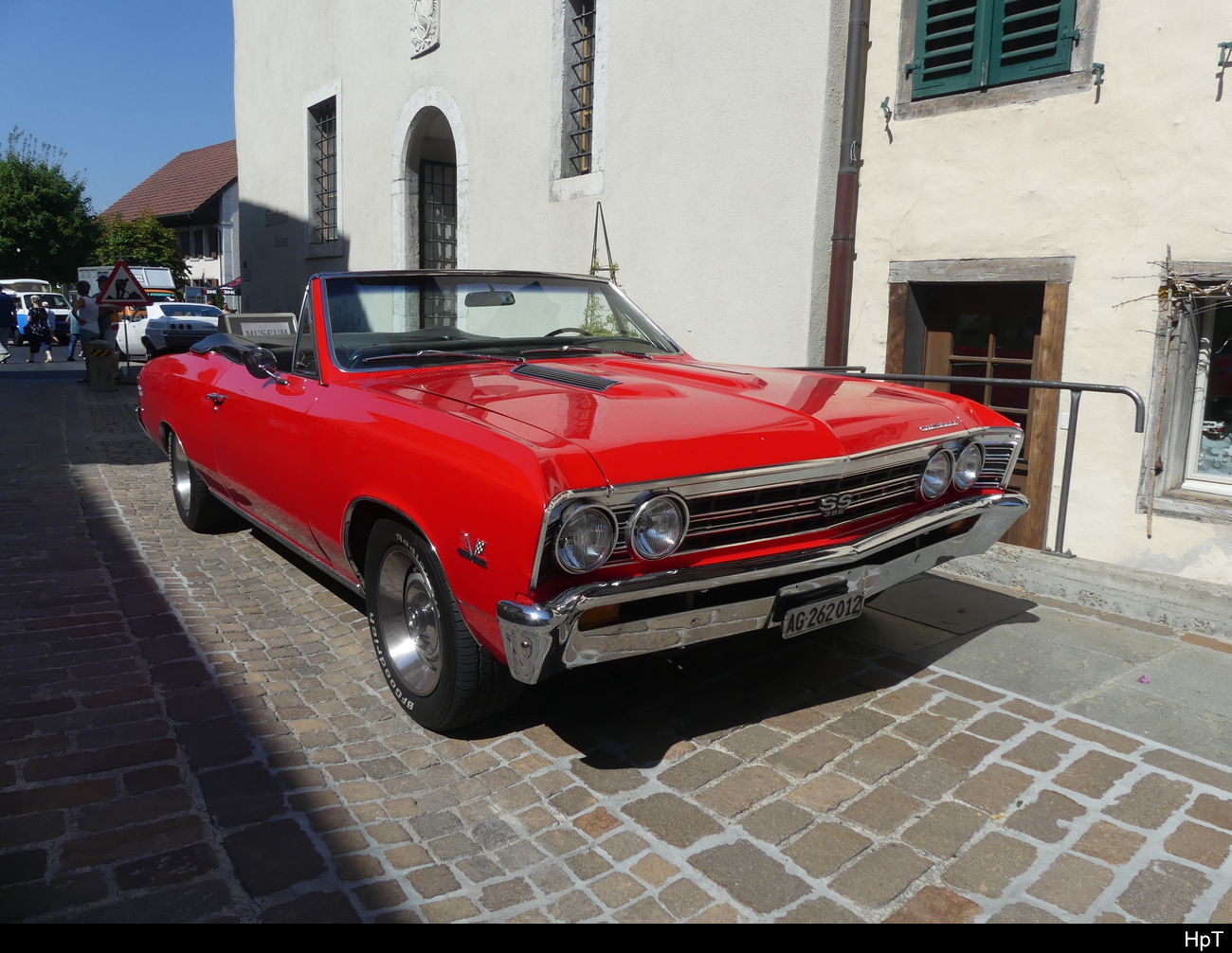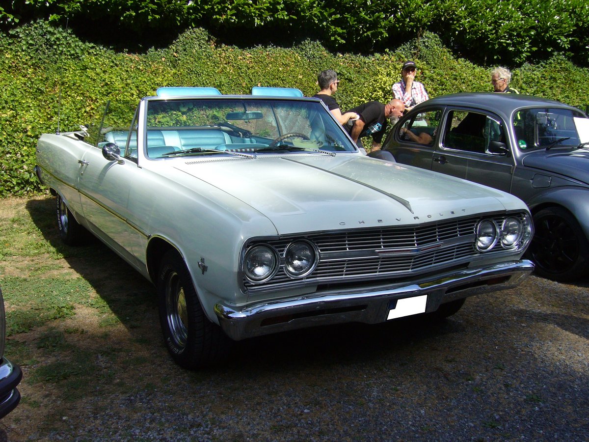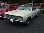 Chevrolet Chevelle Malibu Convertible des Modelljahres 1965 im Farbton ermine ivory. Die Modelle dieser Baureihe waren mit etlichen Sechszylinderreihenmotoren und V8-motoren lieferbar. Oldtimertreffen "Schwarzwaldhaus" in Mettmann am 12.08.2018.