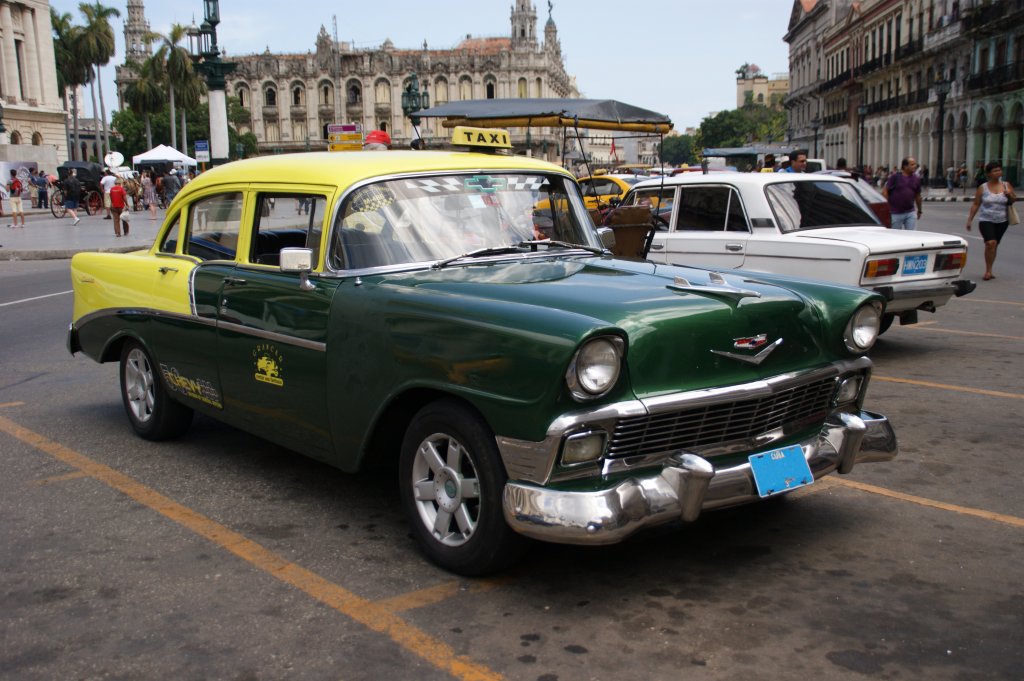 Chevrolet Taxi aus den 50er Jahren auf einem Parkplatz beim Capitol in Havanna. Die Aufnahme stammt vom 12.07.2013.