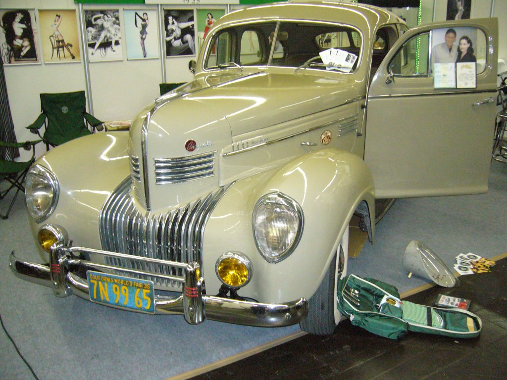 Chrysler New Yorker Series C-23-Eight des Jahrganges 1939. Der New Yorker war die mittlere Ausstattungsvariante der Series C-23. Darunter rangierte der Imperial und darüber der Saratoga. Der 5.290 cm³ große 8-Zylinderreihenmotor leistet 130 PS. Von dieser Modellreihe setzte Chrysler im Jahr 1939 12.536 Autos ab. Techno Classica am 25.03.2012.