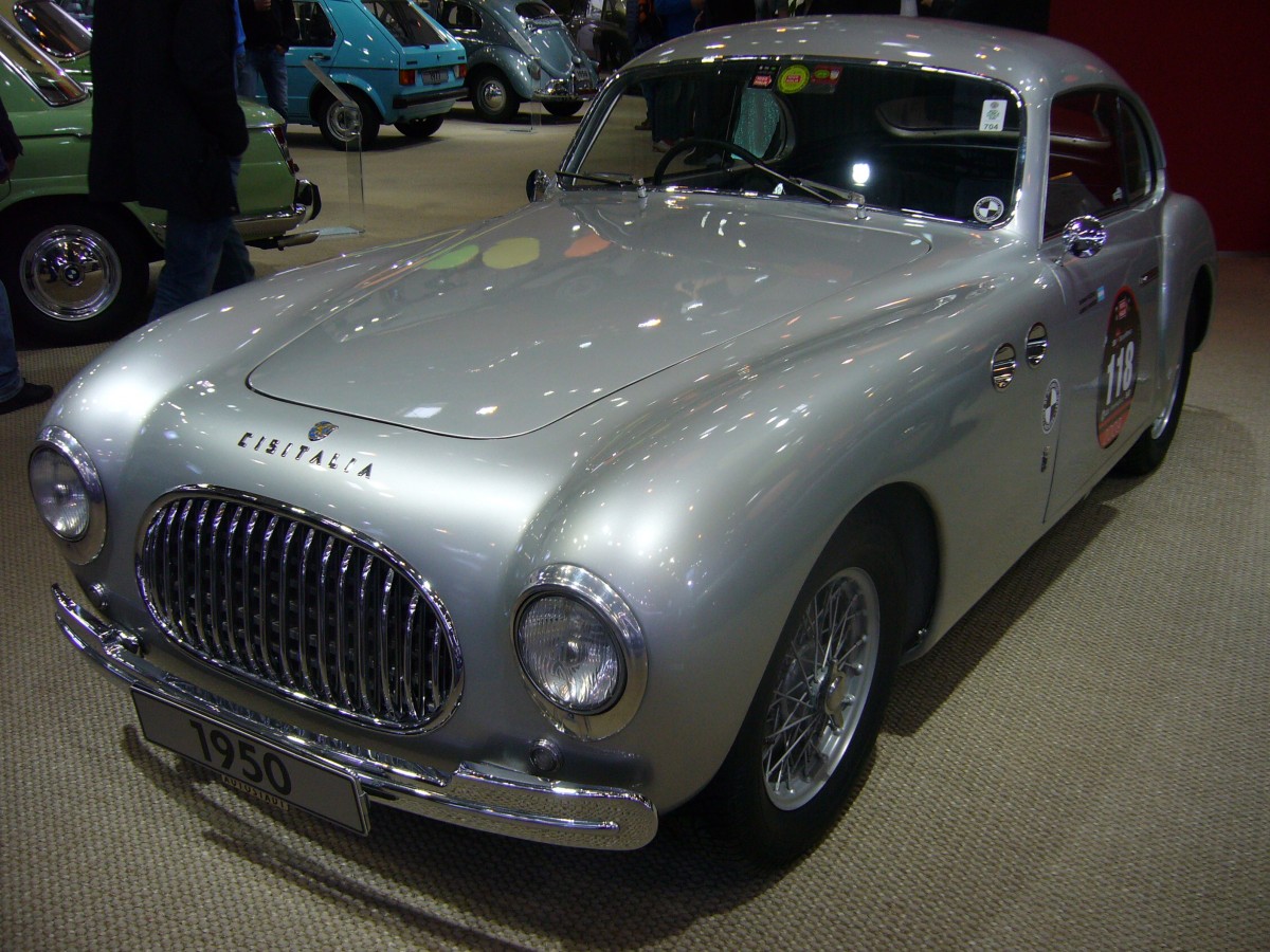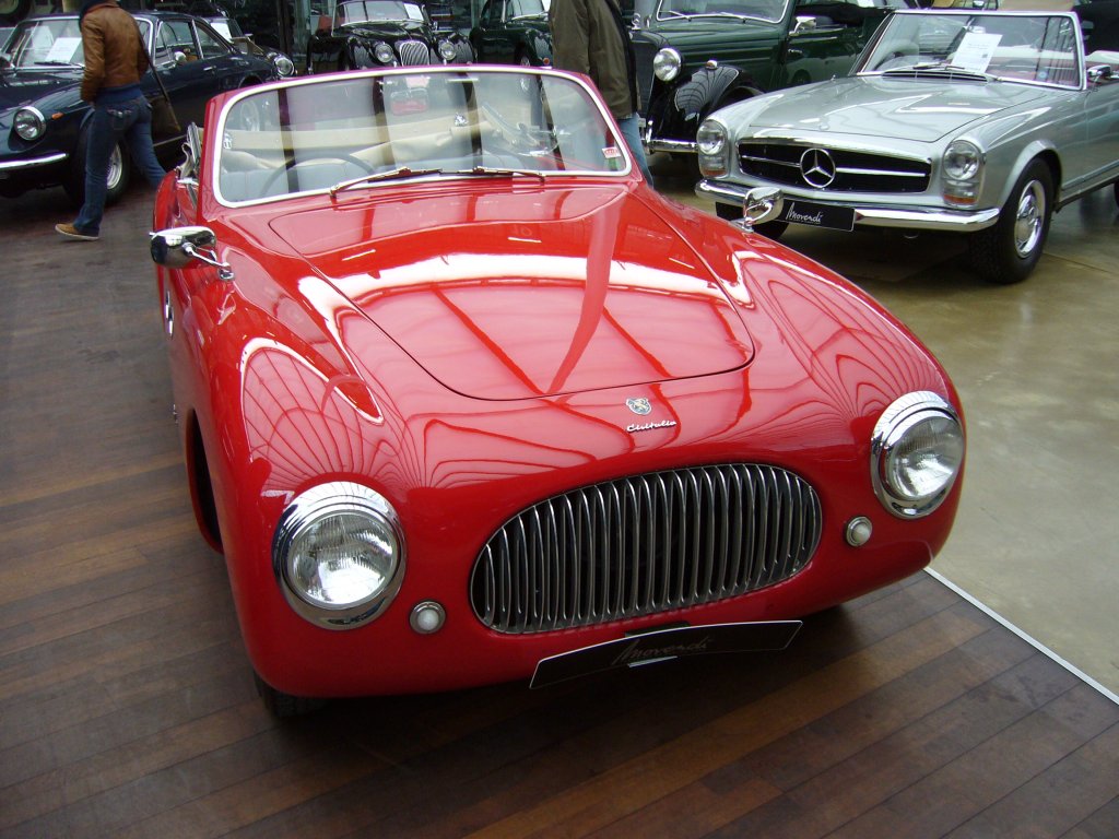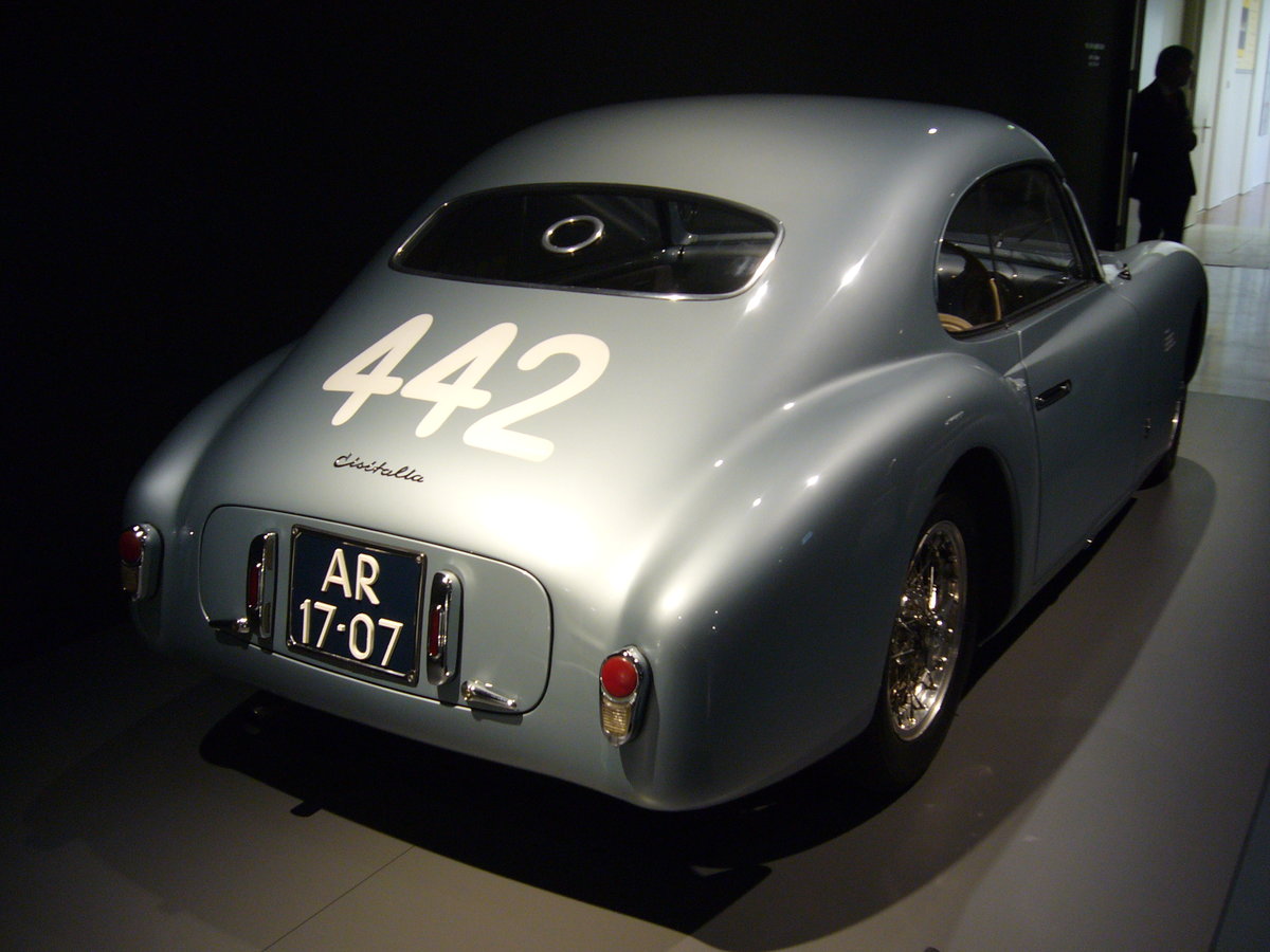 Cisitalia 202 Grand Sport Coupe, gebaut von 1948 bis 1952 in ca. 170 Einheiten. Das Modell 202 war das erste Straßenfahrzeug der Manufaktur Cisitalia/Turin. Es gab ein Coupe und ein Spider Modell. Der Motor stammt aus dem Fiat Millecento und leistet aus einem Hubraum von 1089 cm³ 70 PS. Die Höchstgeschwindigkeit wurde von der C ompagnia