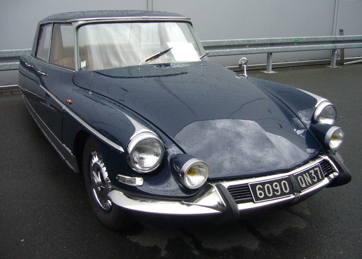 Citroen DS 21 "Majesty Saloon" by Henri Chapron. Insgesamt baute der bekannte Karosseriebetrieb Henri Chapron aus Levallois-Perret bei Paris nur 27 Citroen DS zu Majesty-Limousinen um. Der gezeigte "Majesty" ist ein Modell aus dem Jahr 1967. Die Limousine erhielt vom Karosseriebauer, der auch elegante Cabrio-Versionen der DS fertigte, ein höheres Dach für mehr Raum auf der Rückbank, einen flacheren Kofferraumdeckel und Heckflossen. Der Vierzylinderreihenmotor hat einen Hubraum von 2175 cm³ und leistet 100 PS. Außengelände der Techno Classica Essen am 05.04.2024.