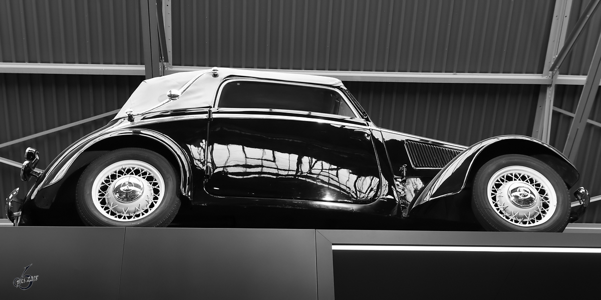 Im Sächsischen Industriemuseum Chemnitz ist eine DKW F7 Front-Luxus-Viersitzer-Cabriolet ausgestellt.