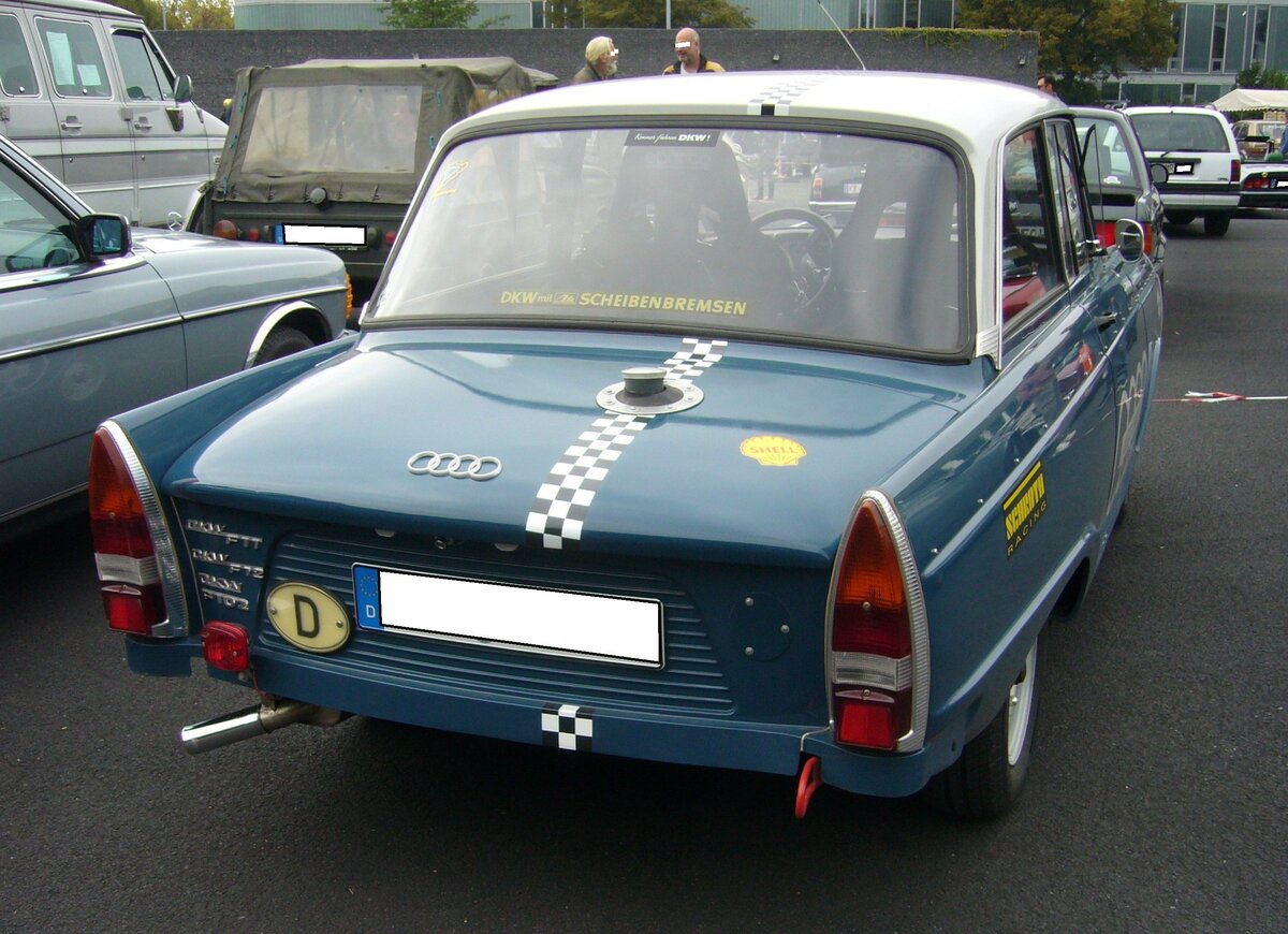 Heckansicht eines DKW F12. Oldtimertreffen auf dem Gelände des Bikertreffs Mutter Vogel in Marl am 28.09.2025.