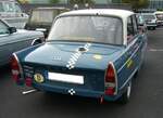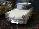 DKW F12, gebaut von 1963 bis 1965. Der F12 und sein spartanischer ausgestattetes Schwestermodell F11 waren die Nachfolger des DKW Junior. Während der F11 noch mit dem Motor des Junior de Luxe ausgestattet war, hatte der F12 serienmäßig einen Dreizylinderreihenzweitaktmotor mit einem Hubraum von 889 cm³ unter der Motorhaube. Dieser leistet 40 PS und verhilft dem F12 zu einer Höchstgeschwindigkeit von 124 km/h. Oldtimertreffen auf dem Gelände des Bikertreffs Mutter Vogel in Marl am 28.09.2025.
