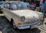 DKW F11 Junior, produziert von 1959 bis 1963. Der Junior wurde bereits auf Frankfurter Automobil Ausstellung des Jahres 1957 gezeigt. Er kam aber erst im August 1959 zu den Händlern. Unter der Motorhaube werkelt ein wassergekühlter Dreizylinderreihenzweitaktmotor, der aus einem Hubraum von 741 cm³ 34 PS leistet. Der gezeigte  Junior  wurde erstmalig am 07 Oktober 1960 zugelassen. 11. Oldtimertreffen des AMC Duisburg auf dem Parkplatz des Landschaftspark Duisburg Nord am 24.08.2025.