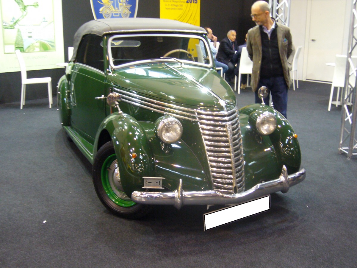 Fiat 1100 508C Cabriolet von der Carozzeria Viotti. Auf Basis eines Millecento des Baujahres 1939, entstand bei der Carozzerie Viotti/Torino dieses hübsche Cabriolet. Der Reihenmotor mit vier Zylindern leistet 32 PS aus 1089 cm³ Hubraum. Techno Classica am 18.04.2015.