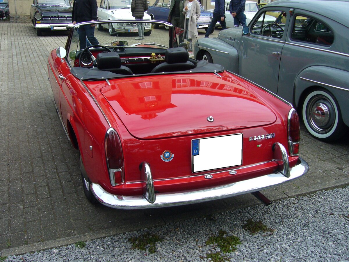 Heckansicht eines Fiat 1500 Spider, gebaut von 1963 bis 1966. Oldtimertreffen des AMC Essen-Kettwig am 01.05.2022.