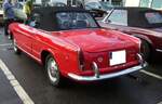 Fiat 1500 Spider im Farbton rosso corsa, gebaut in den Jahren von 1963 bis 1966. Das hübsche Blechkleid wurde von Pininfarina geschneidert. Der Vierzylinderreihenmotor hat einen Hubraum von 1481 cm³ und leistete 67 PS. Ab dem Modelljahr 1964 wurde die Leistung auf 75 PS erhöht. Die Fahrzeuge mit 75 PS waren serienmäßig mit einem Fünfganggetriebe ausgestattet. Der gezeigte Wagen wurde 1965 erstmalig zugelassen. 10. Saarner Oldtimer Cup am 27.08.2023 in Mülheim an der Ruhr.