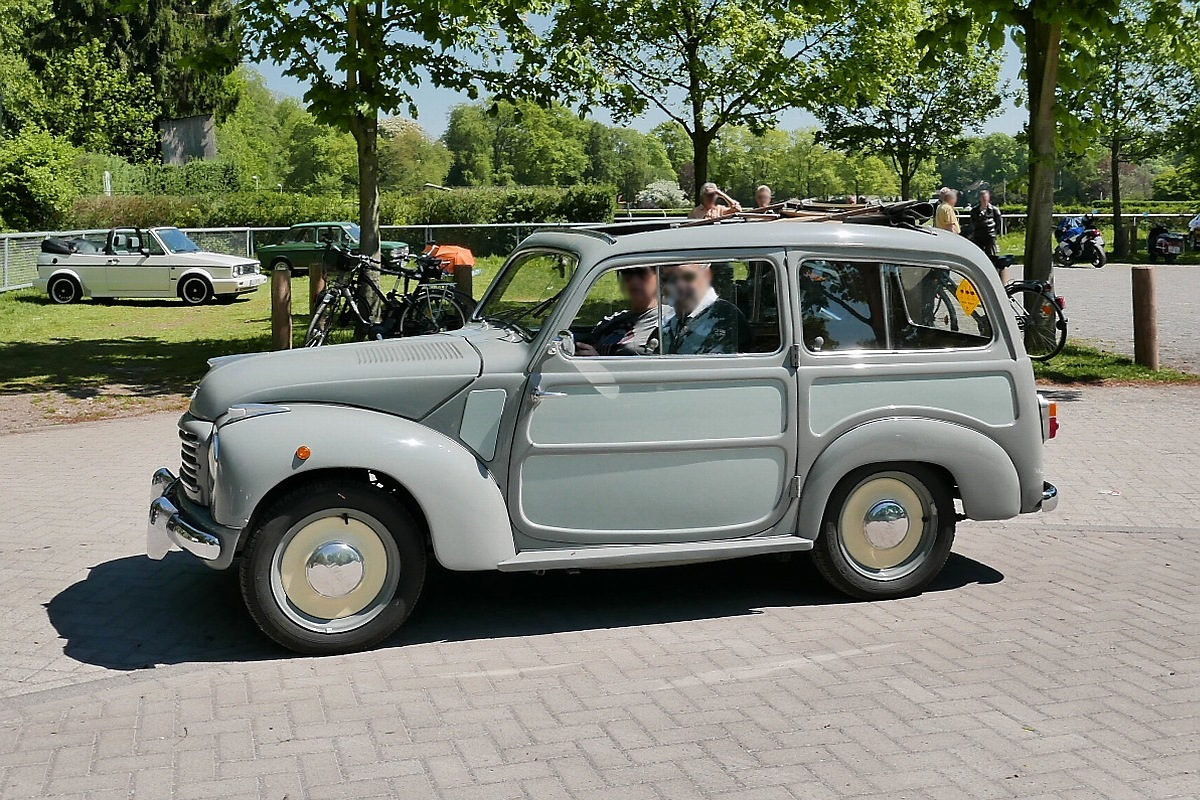 Fiat 500C Giardiniera auf dem Oldtimer-Treffen an der Rennbahn in Krefeld, 8.5.16