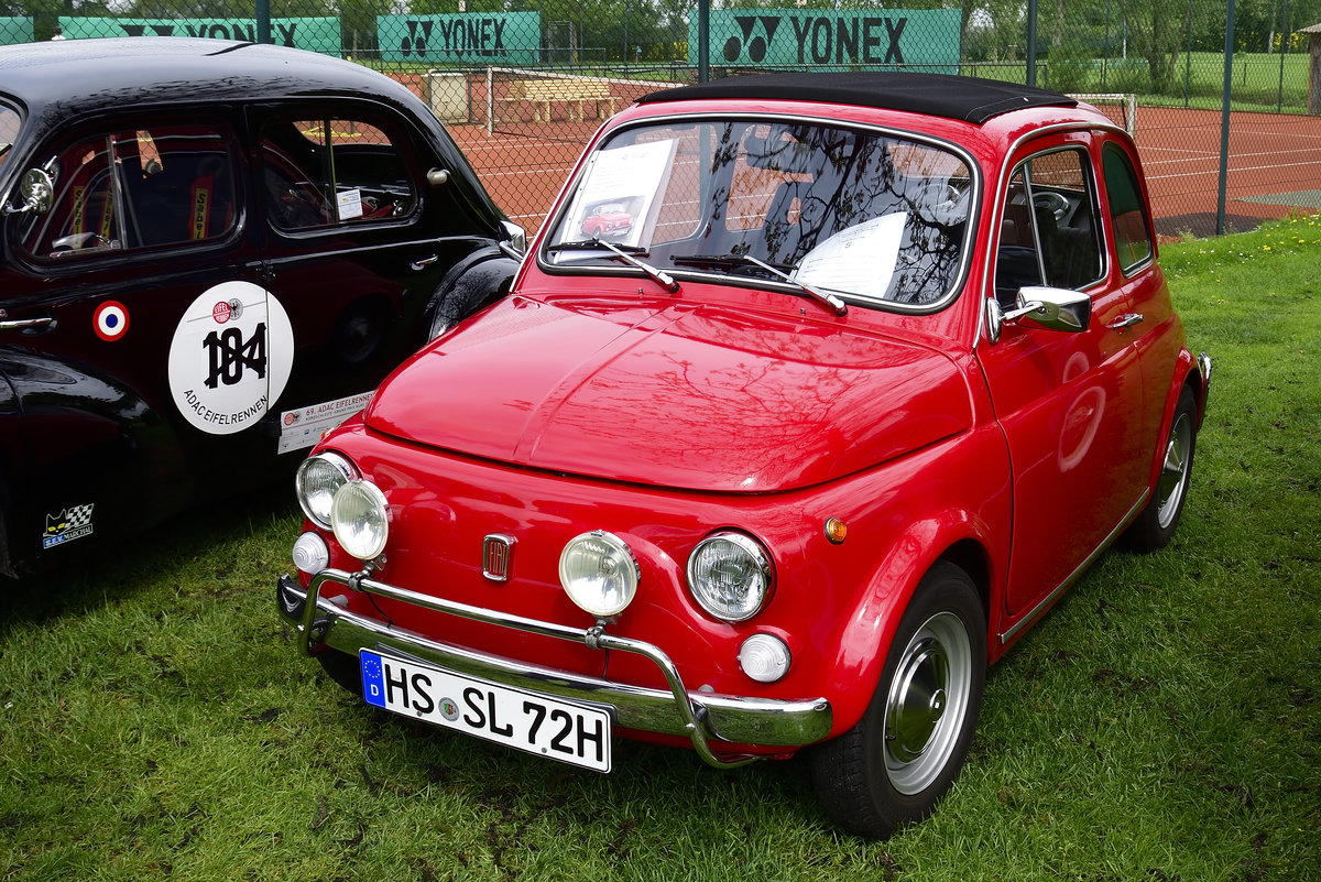 Fiat 500 „Frühlingserwachen“ der Oldtimer-Interessengemeinschaft Grenzland, am 1.5.2018. Geilenkirchener Sportpark Loherhof