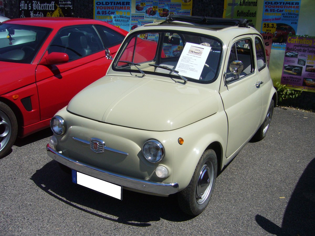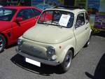 Fiat 500 . 1957 - 1977. Der Nuova 500 war der Inbegriff der Volksmotorisierung in Italien. Hier wurde ein Modell F aus dem Jahr 1966 abgelichtet. Dieser Wagen lief von 1966 bis 2014 in Catania/Sizilien. Der im Heck verbaute Zweizylinderreihenmotor leistet in diesem Modell 18 PS aus 594 cm³ Hubraum. Treffen "Forza Italia" am 30.06.2018 in Krefeld.