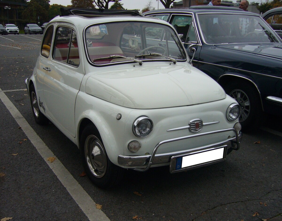 Heckansicht des Fiat 600 "Granluce" Coupe mit Viotti Karosserie aus dem Jahr 1959. Techno Classica Essen am 13.04.2023.