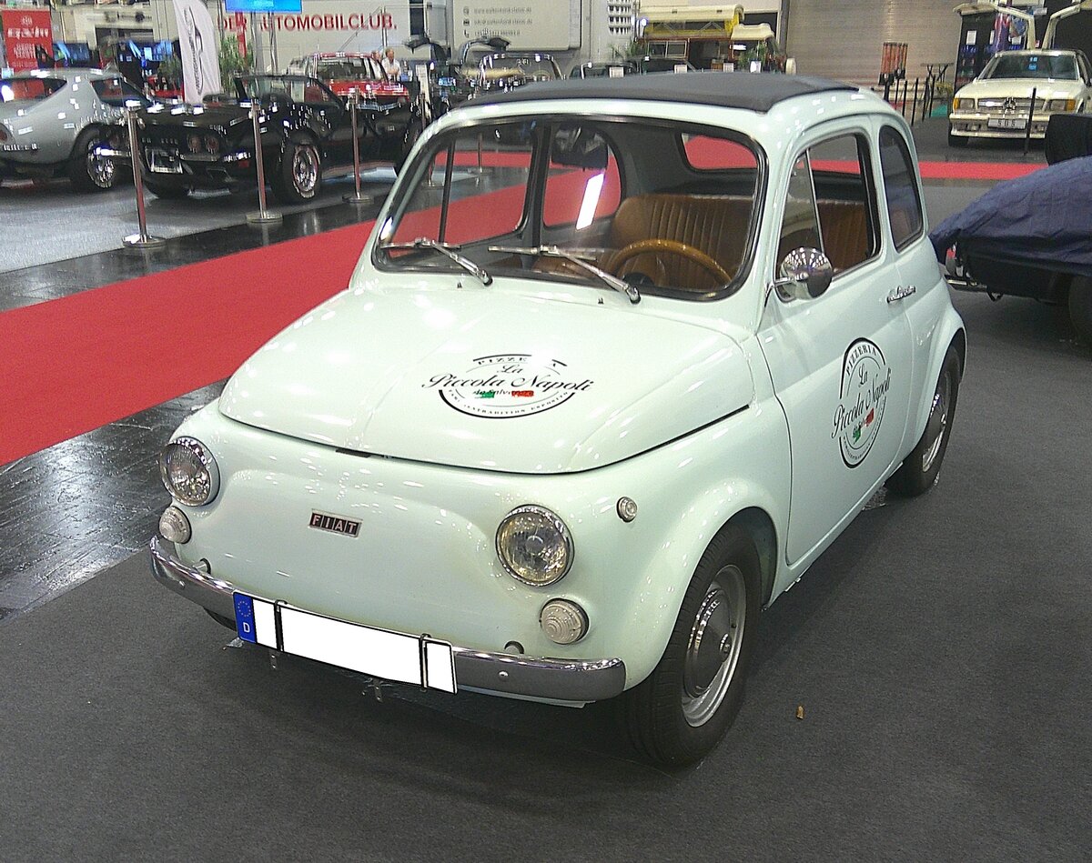 Fiat 500 in den Landesfarben Italiens auf einem Dach einer Pizzeria am 19. April 2009 in Altdorf/UR