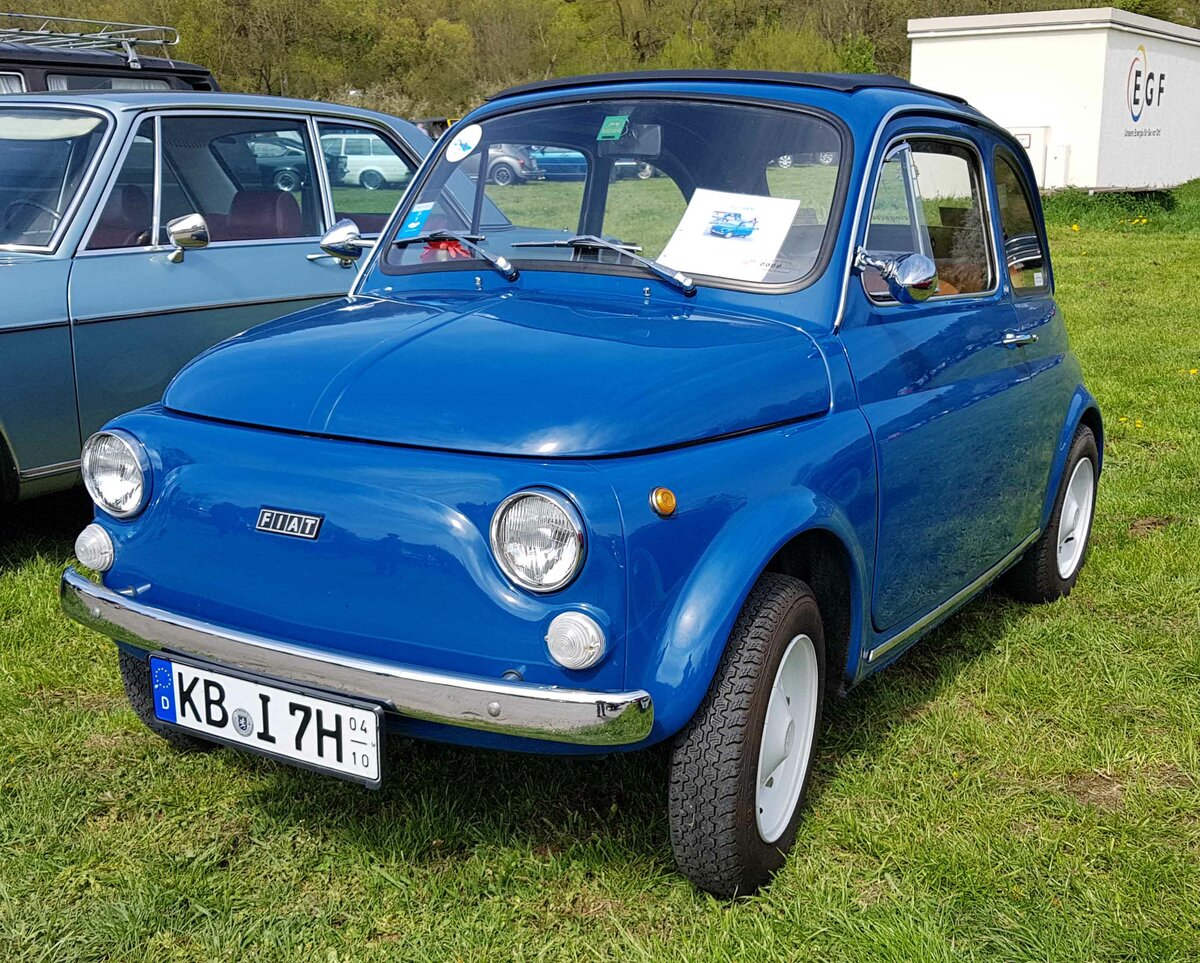 =Fiat 500 steht bei der Oldtimerveranstaltung in Frankenberg/Eder im Mai 2023
