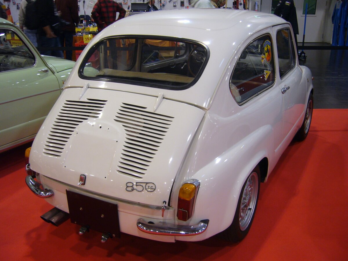 Heckansicht eines Fiat Abarth 850TC. Essen Motorshow am 06.12.2023.