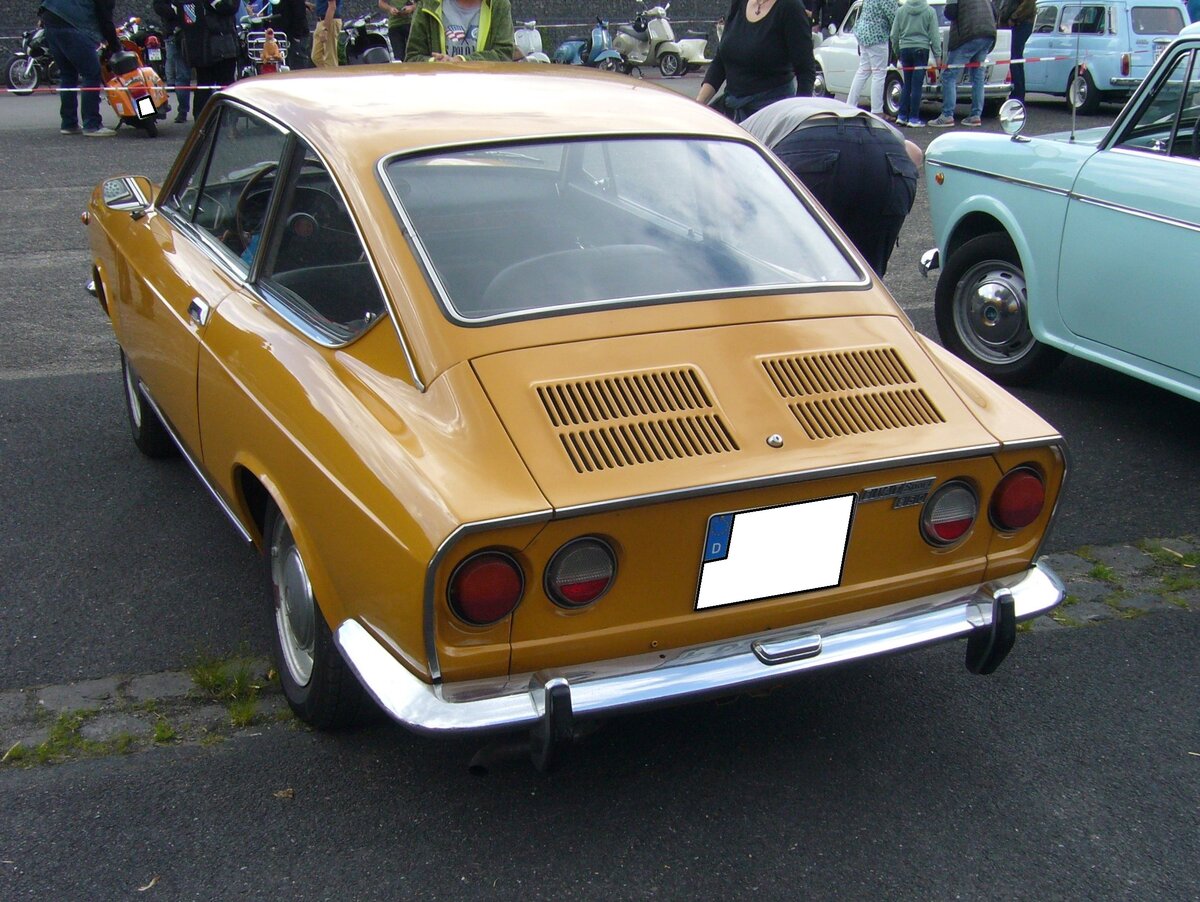 Heckansicht eines Fiat 850 Sportcoupe. "Forza Italia" = Oldtimertreffen für italienische Fahrzeuge am 30.05.2024 an Mo´s Bikertreff in Krefeld.
